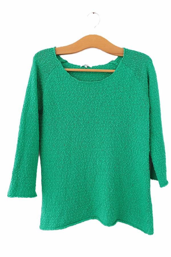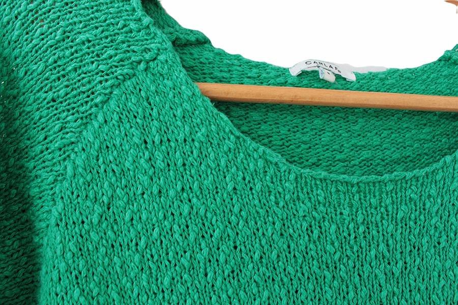 Sweter w pięknym, ciepłym odcieniu zieleni - idealny dla osób o ciepłym i neutralnym typie urody. Bardzo twarzowy kolor podkreślający urodę.
