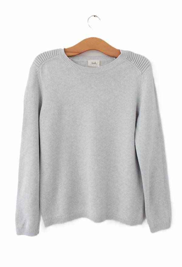 Sweter vintage w kolorze szarym, z ciekawym splotem na ramionach. Świetny naturalny skład - wełna, bawełna i wiskoza bambusowa.