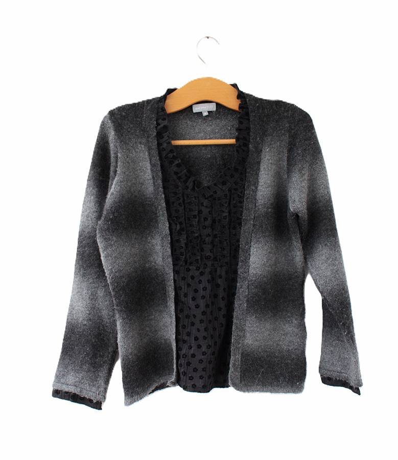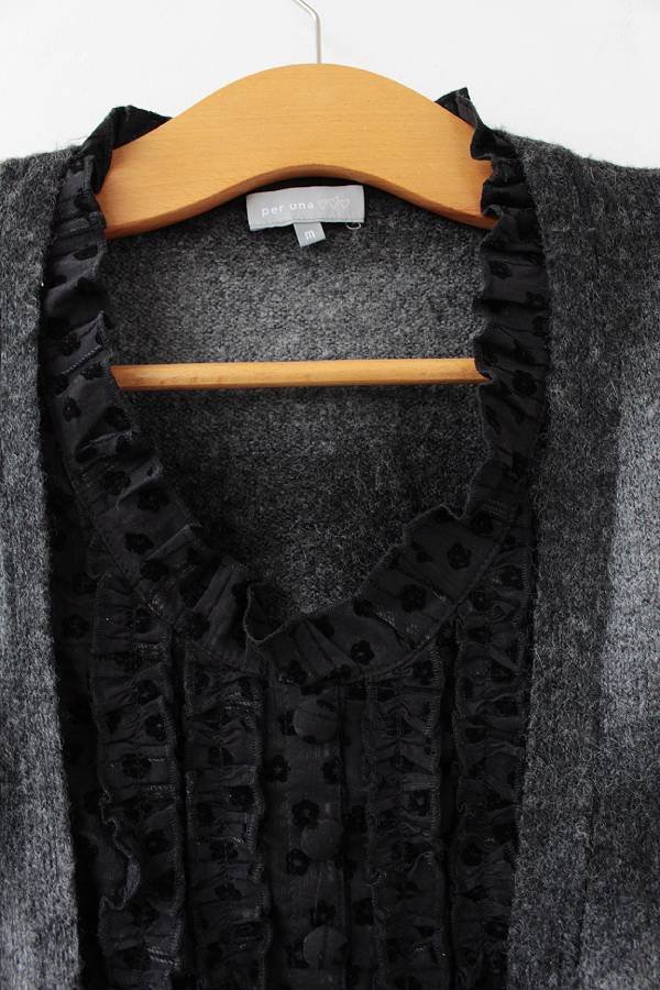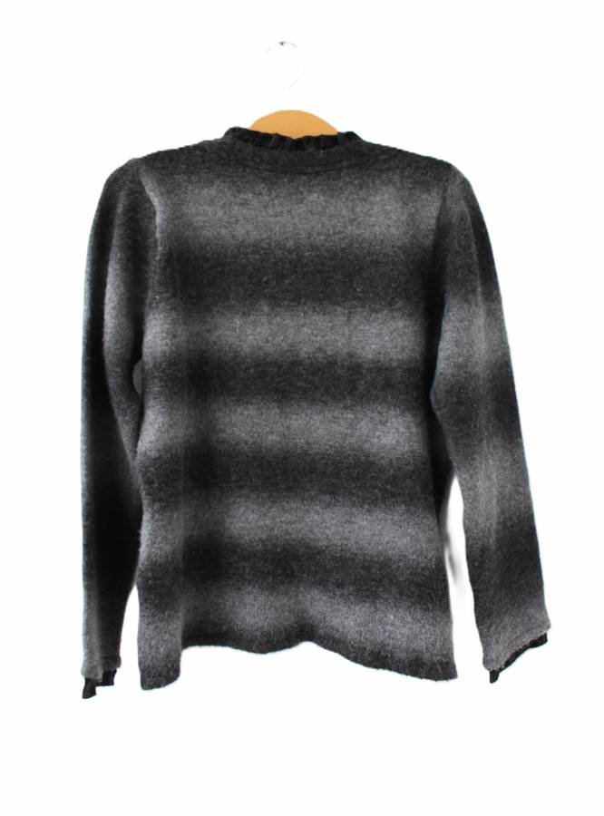 Sweter vintage z miękkiej dzianiny, ozdobiony subtelnymi, kobiecymi wstawkami.