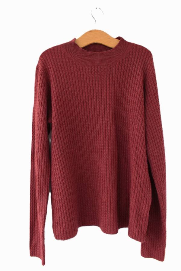 Sweter vintage w odcieniu mlecznej czekolady, z wełną i wiskozą w składzie.