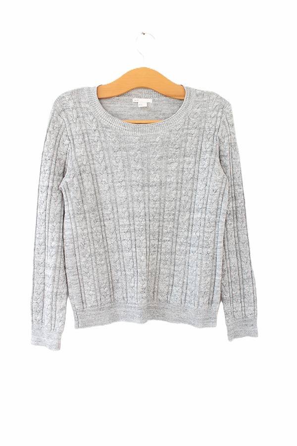 Sweter vintage w klasycznym odcieniu szarości, o warkoczowej fakturze.