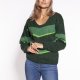 Sweter z ozdobnym dekoltem w serek - SWE304 ecru/granat/niebieski MKM