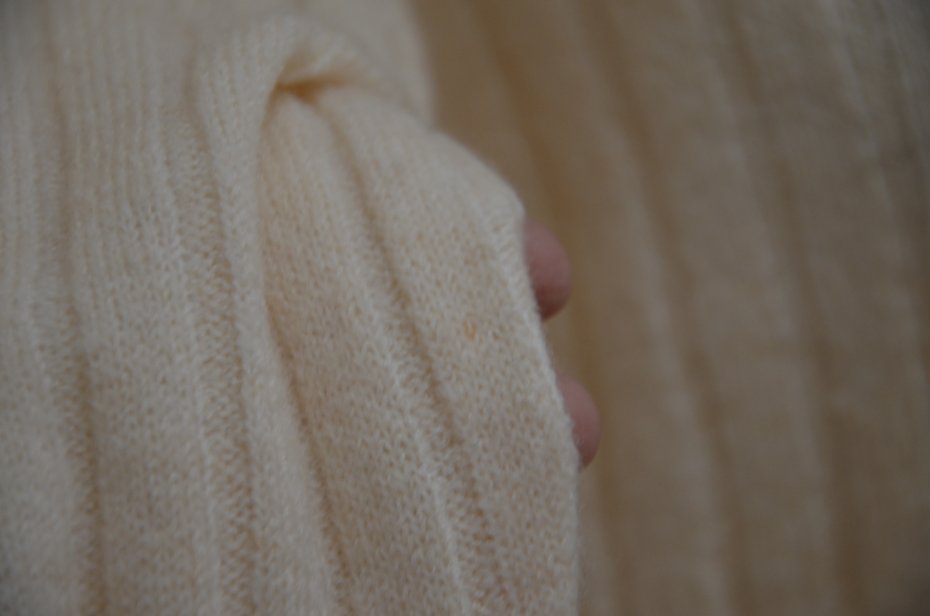 w przędzy zdarzają się pomarańczowe/czerwone/ i innego koloru włókna - wynika to z użycia recyklowanego poliestru