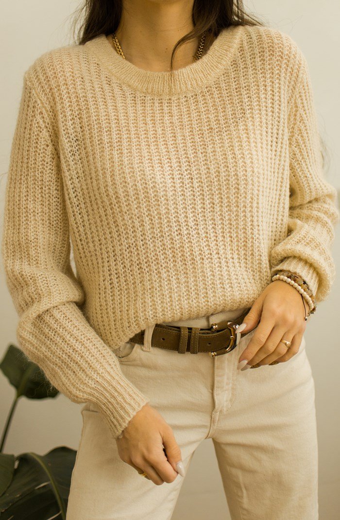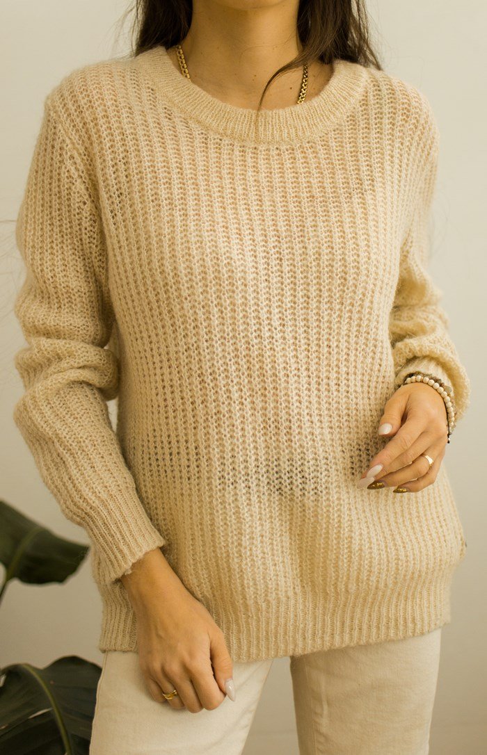 Kremowy sweter z moherem.