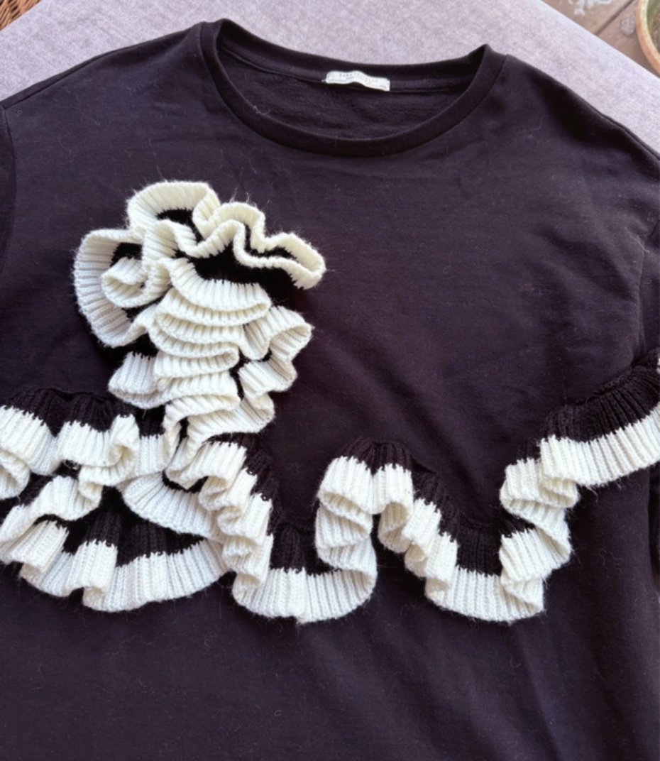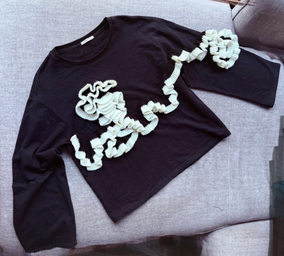 Czarny sweter/bluza z falbankami w kształcie rozet.