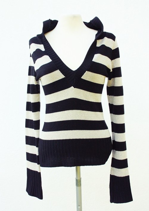 SWETEREK W ZLOTO-CZARNE PASY Z KAPTUREM,rozm.S,,STAN BDB.