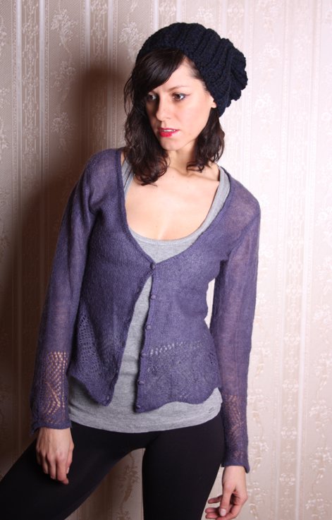 Delikatny sweterek w kolorze fioletowym,ażur, moherek,stan dobry +,rozmiar S..osoba na zdj,nosi rozm.S POLECAM!!!