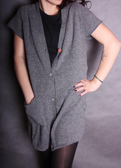 Szary sweterek, rozmiar s/m. ,na zdj.widoczne uciete rekawy,osoba na zdj.nosi rozm. S/WZROST 158CM.