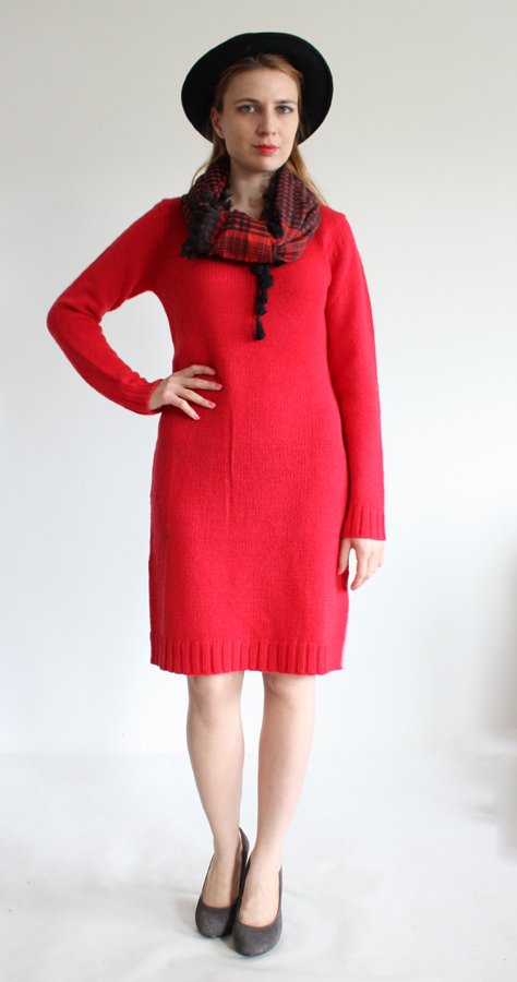 Czerwona, ciepła sweterkowa sukienka o doskonałym składzie. Materiał nie gryzie i uciąga się.