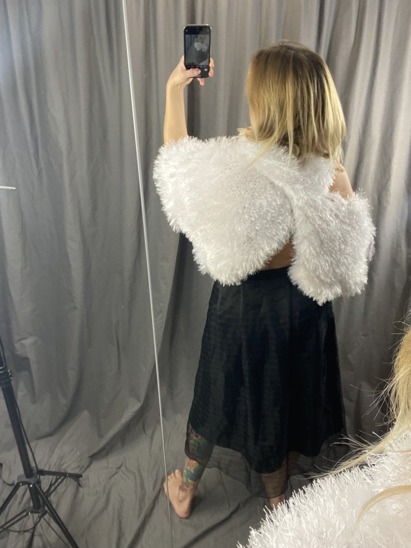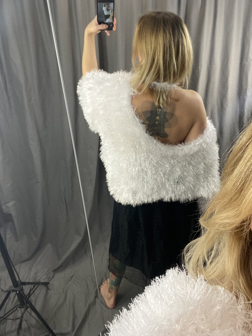 Mieciusi niczym puszek, oversizowy sweretek, super na sukienki też. Można nosić w 2 wersjach, albo na sznureczkach na szyję, albo zawinięty na plecach. Ogólnie jest ogromny, ale po założeniu jest leży meegasnie ...