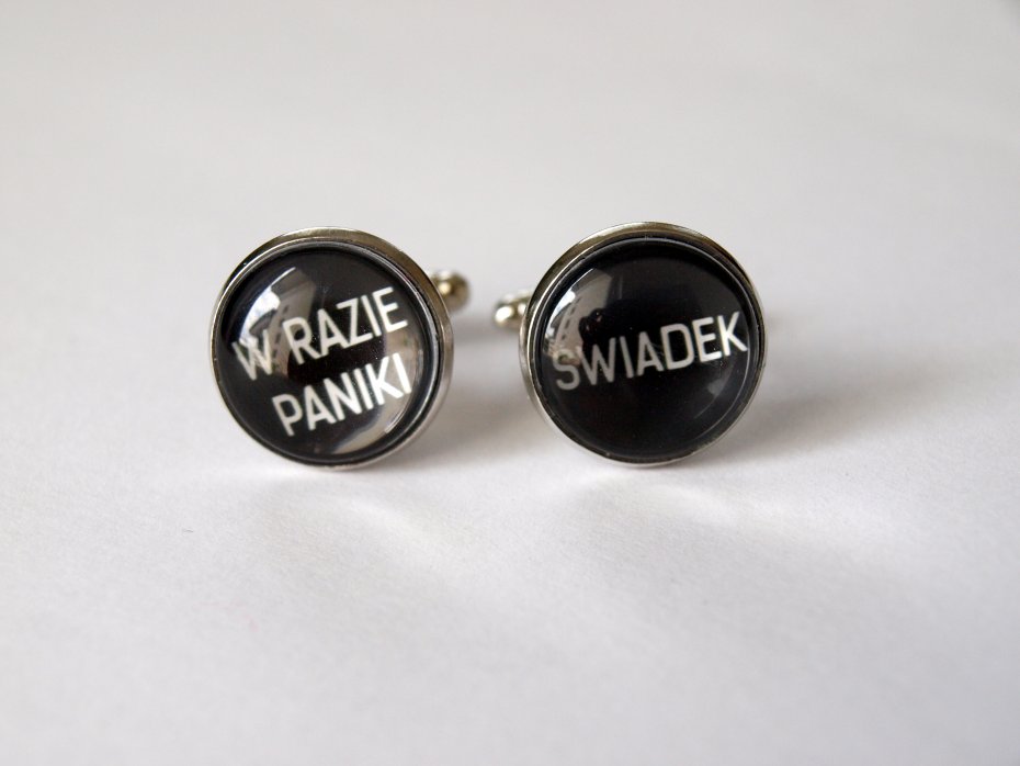 Spinki do mankietów w kolorze srebra z bardzo ciekawą grafiką, przykrytą szklanym kaboszonem. Zapakowane w śliczne pudełko. Idealne na prezent!