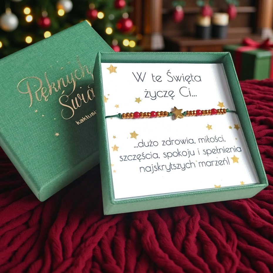 Bransoletka dostępna z 4 różnymi świątecznymi kartami - tutaj z kartą ze zdjęcia głównego.
