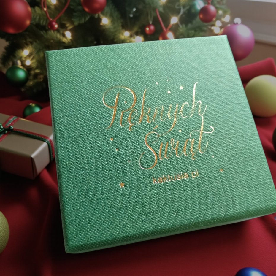 PAKUJĘ W PUDEŁKO ŚWIĄTECZNE Z NAPISEM :"PIĘKNYCH ŚWIĄT"
