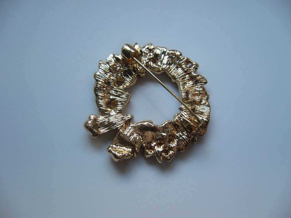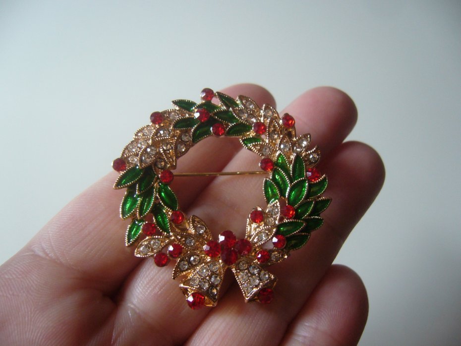 Przepiękna Świąteczna broszka metalowo emaliowana wieniec świąteczny