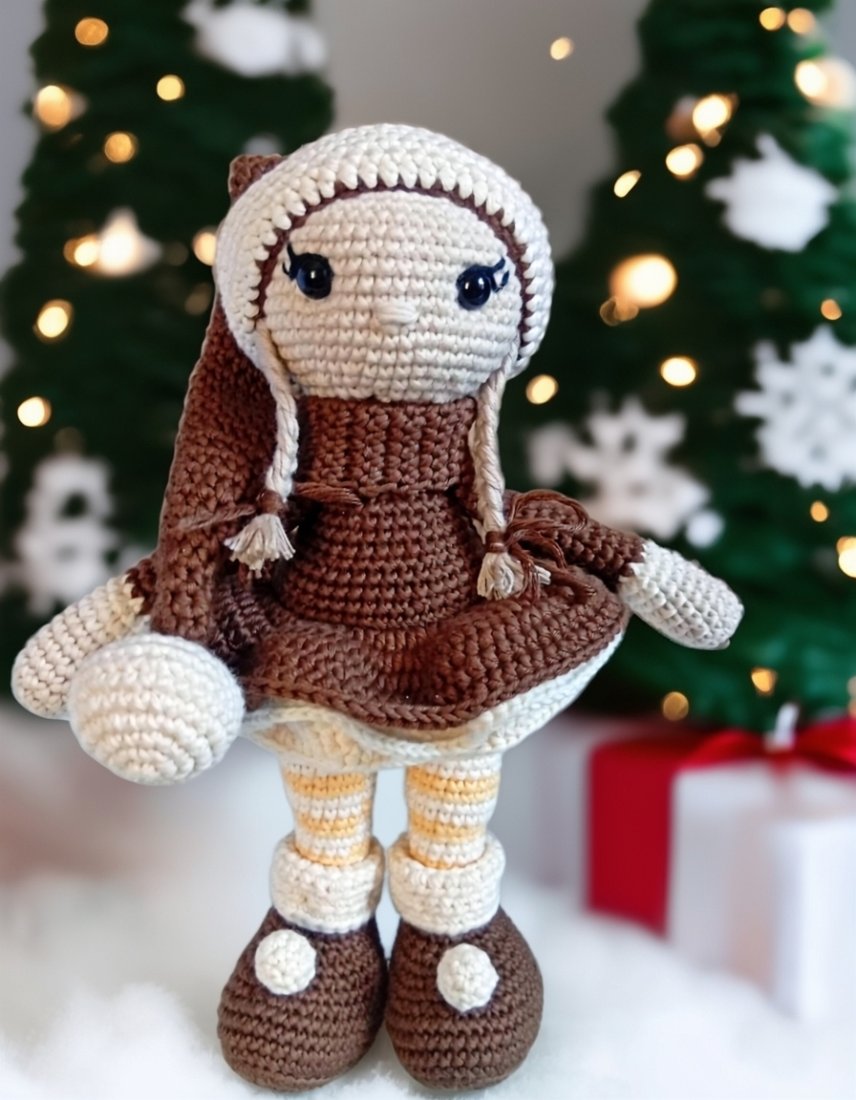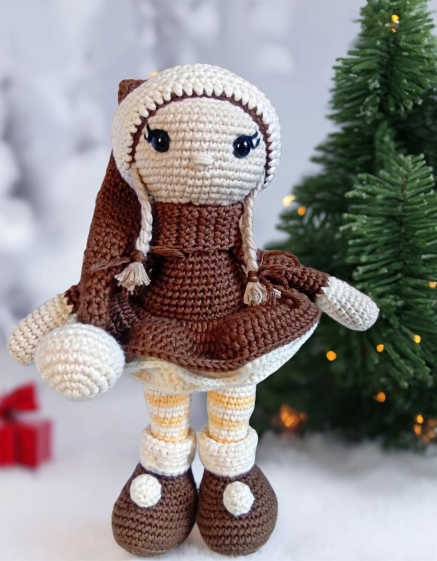 Laleczka ma 20 cm wysokości i emanuje ciepłem oraz przytulnością, dzięki czemu pięknie wpasuje się w zimowy, świąteczny klimat. To idealny element dekoracyjny do pokoju dziecka, spokojnego kącika w domu lub wyjątkowy, unikatowy prezent.