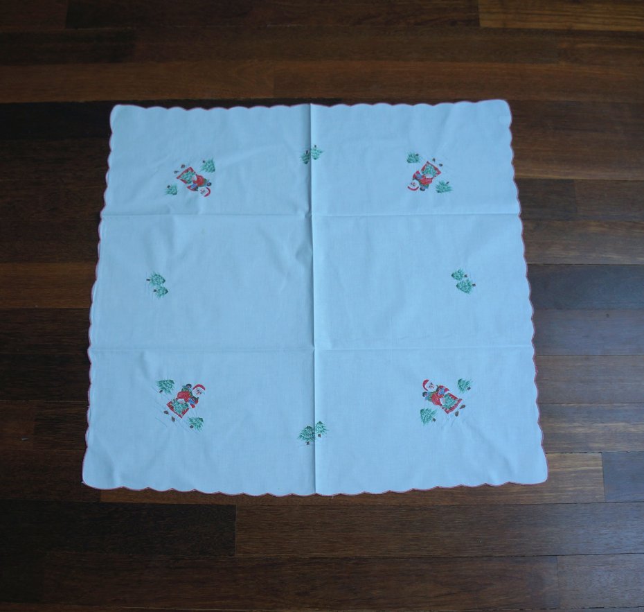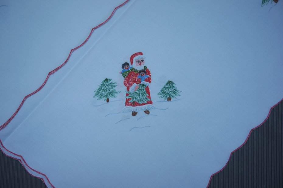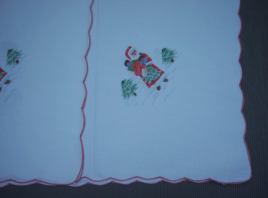 Biała serweta. Haft maszynowy. Motyw świąteczny. Tkanina naturalna - płótno. Lekko usztywniona. Stan bardzo dobry - (mała plamka).