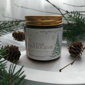 ŚWIĄTECZNA ŚWIECA SOJOWA WIŚNIE W CZEKOLADZIE