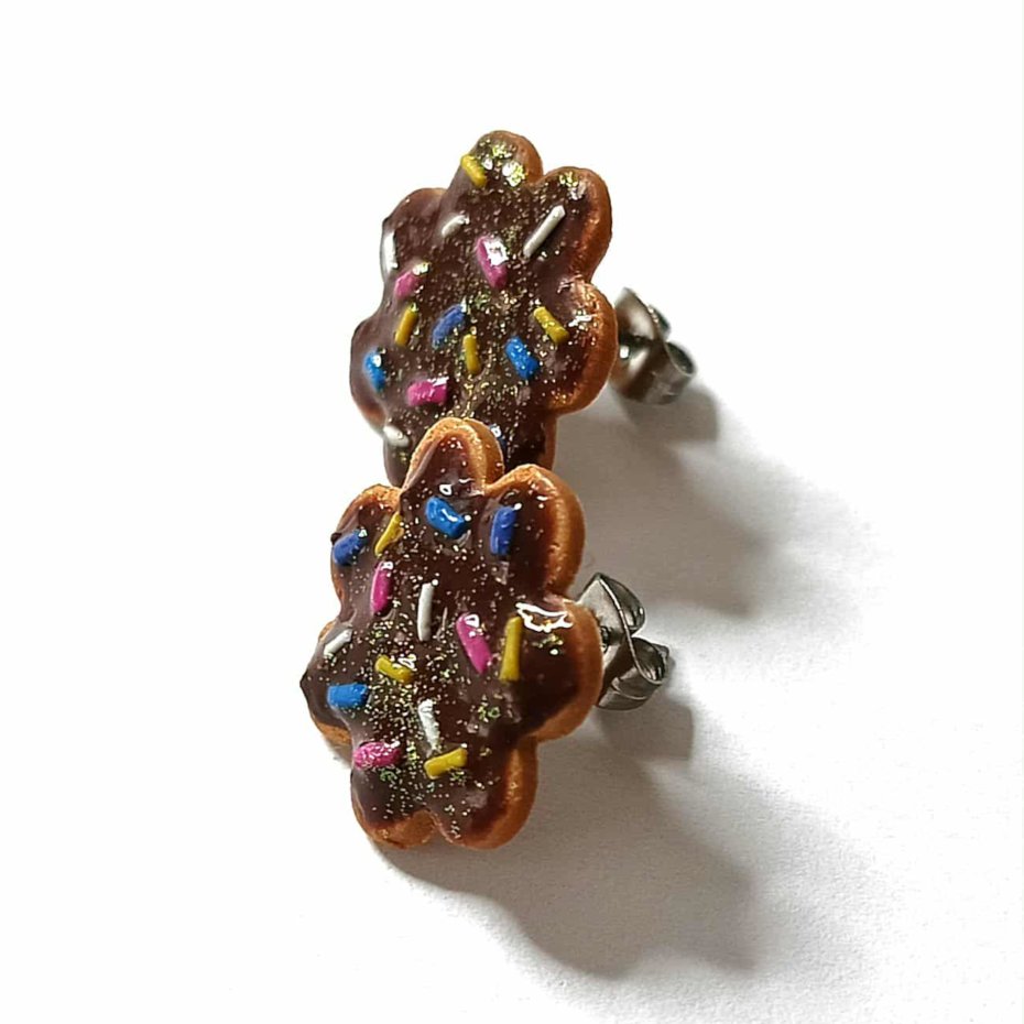 Kolczyki w kształcie czekoladowych pierniczków to idealny dodatek dla miłośniczek słodkich, oryginalnych ozdób.