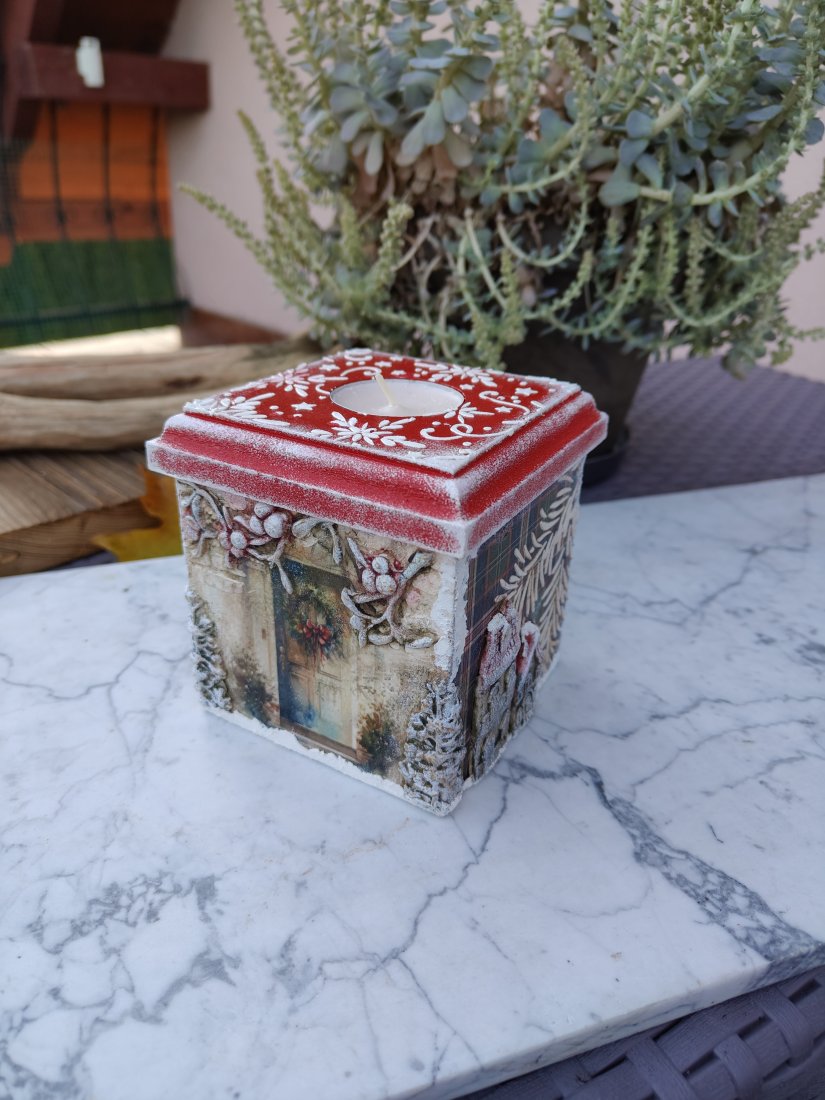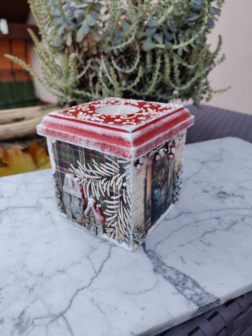 Ręcznie zdobione pudełko ze świecznikiem | Dekoracje do domu | Decoupage handmade