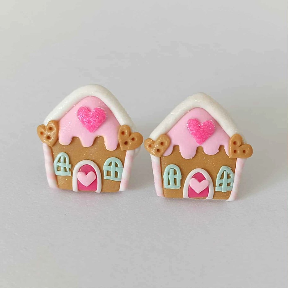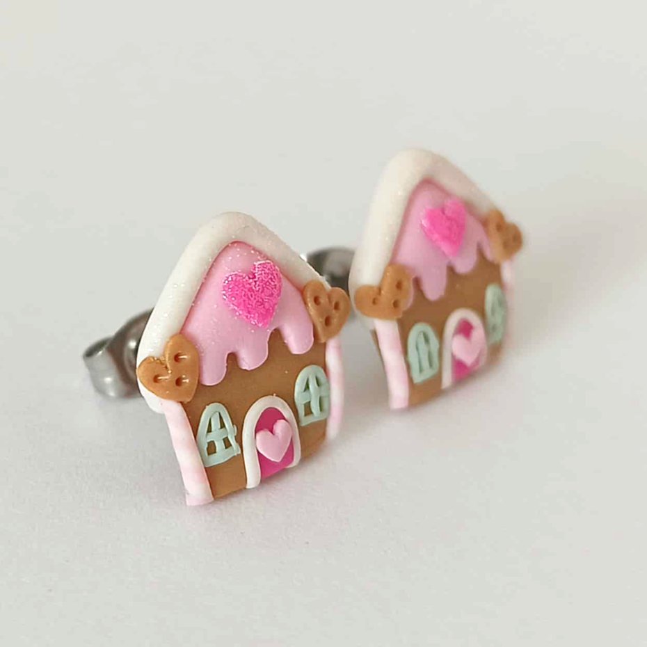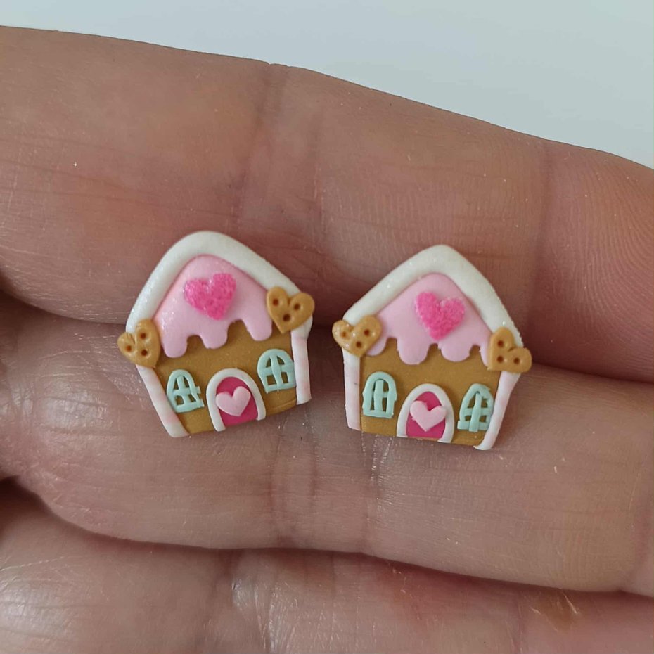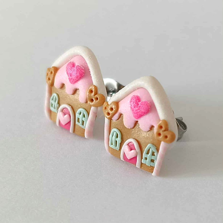 Zabawne kolorowe kolczyki wykonane ręcznie z masy termoutwardzalnej Fimo w kształcie domków z piernika. Wielkość kolczyków to ok. 1,3 cm. Sztyfty wykonane są ze stali chirurgicznej. Kolczyki świetne na prezent. Zobacz moją całą galerię w Decobazaar!