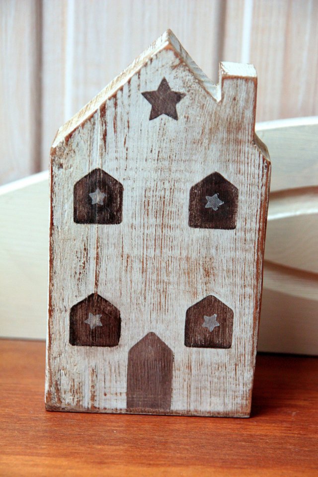Drewniany domek / kamieniczka wykonana ręcznie w klimacie świąteczno - zimowym.