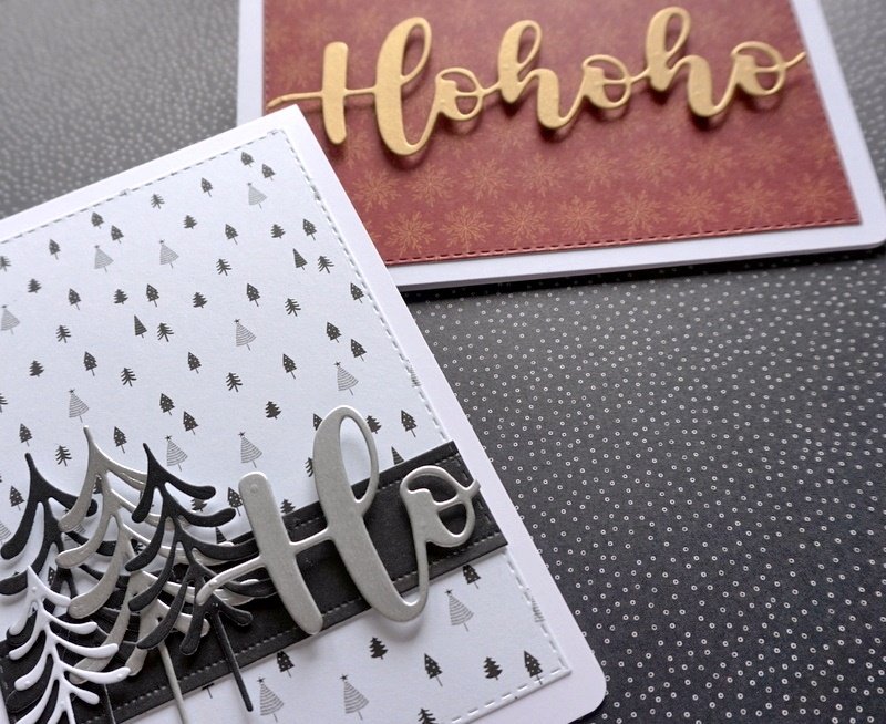 Część ozdobną kartek skąpałam w świątecznej feerii barw - ciepłej czerwieni i złota oraz chłodnej bieli i srebra :) Kropkę nad "i" stanowi przestrzenny charakter kartek.