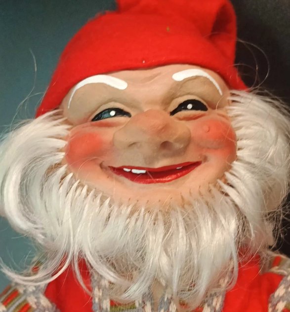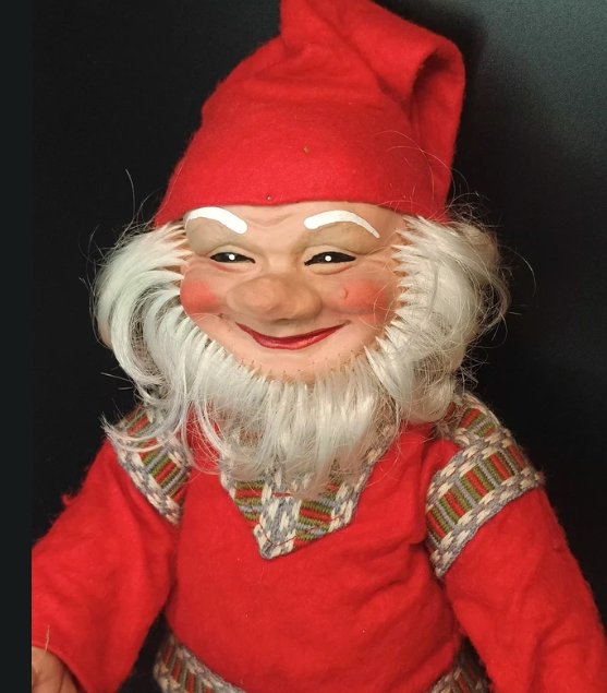 Przeuroczy brzydal bez zęba na przodzie, czyli skandynawski troll/krasnal. Głowa, dłonie i buty wykonane z latexu, reszta z tkaniny, usztywniony drutem.