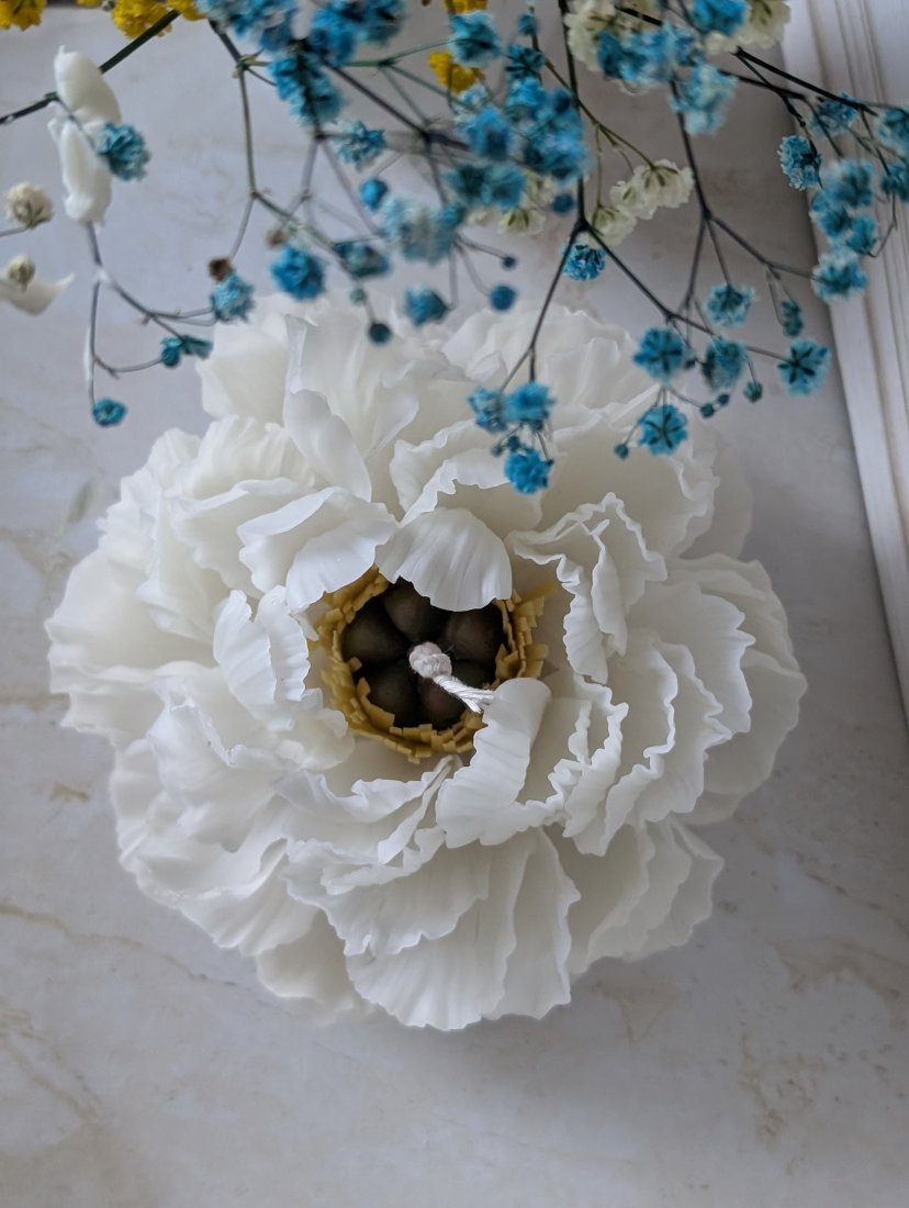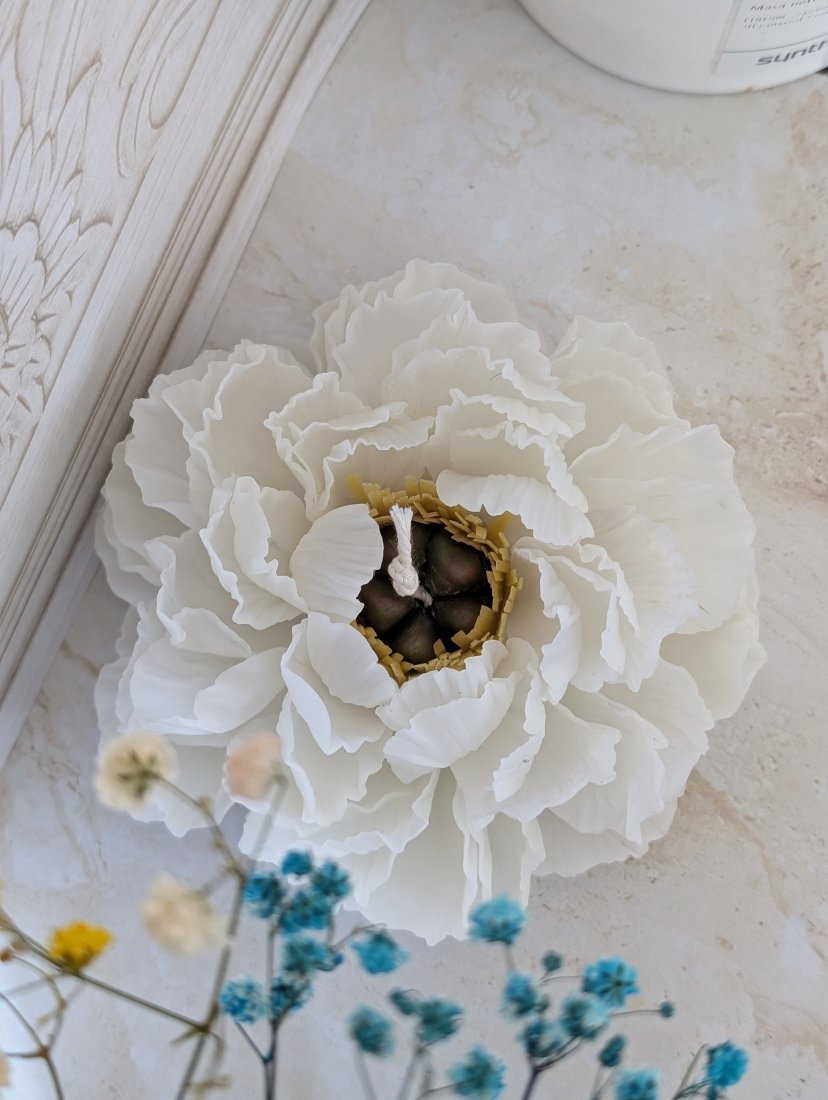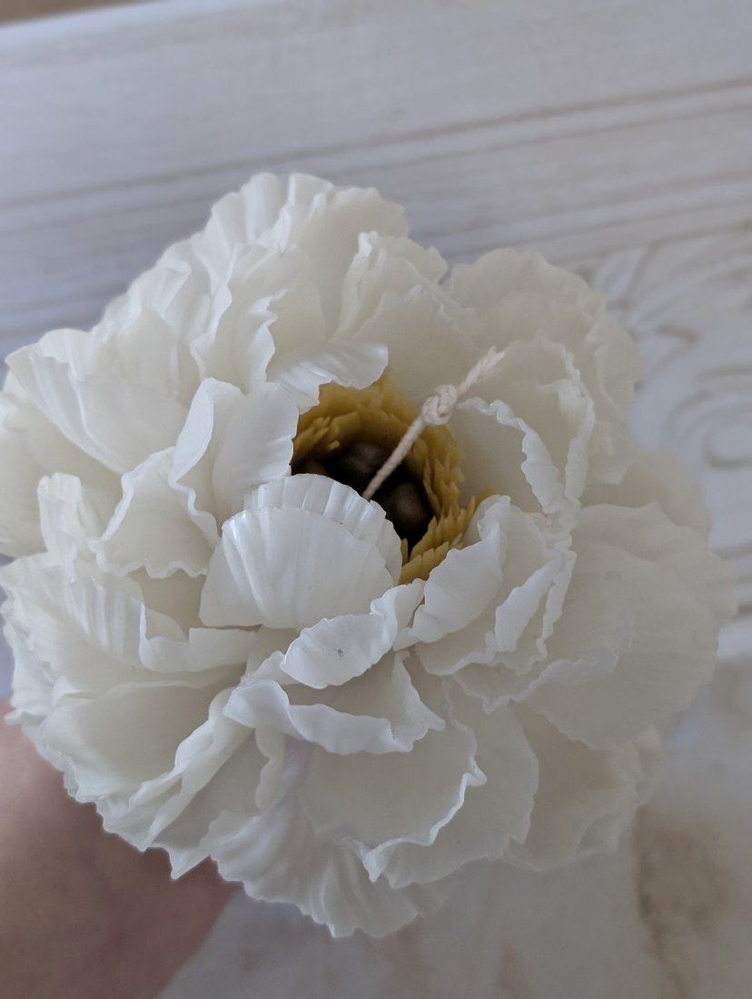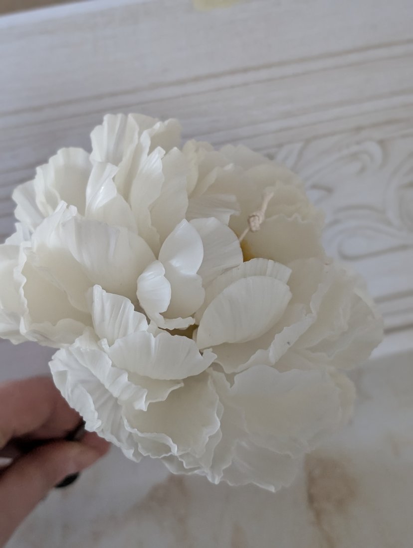 Świeca Piwonia jest tworzona z pojedynczych płatków,nie wylewana z formy.