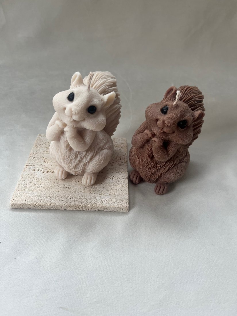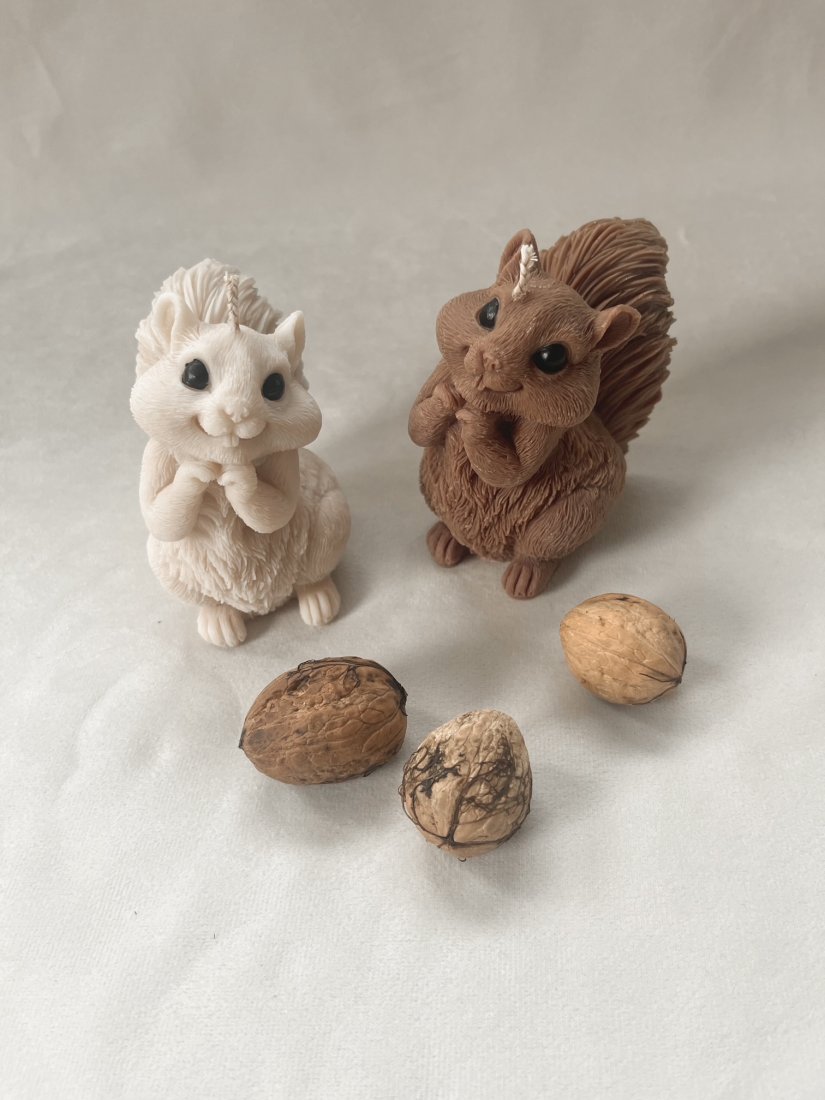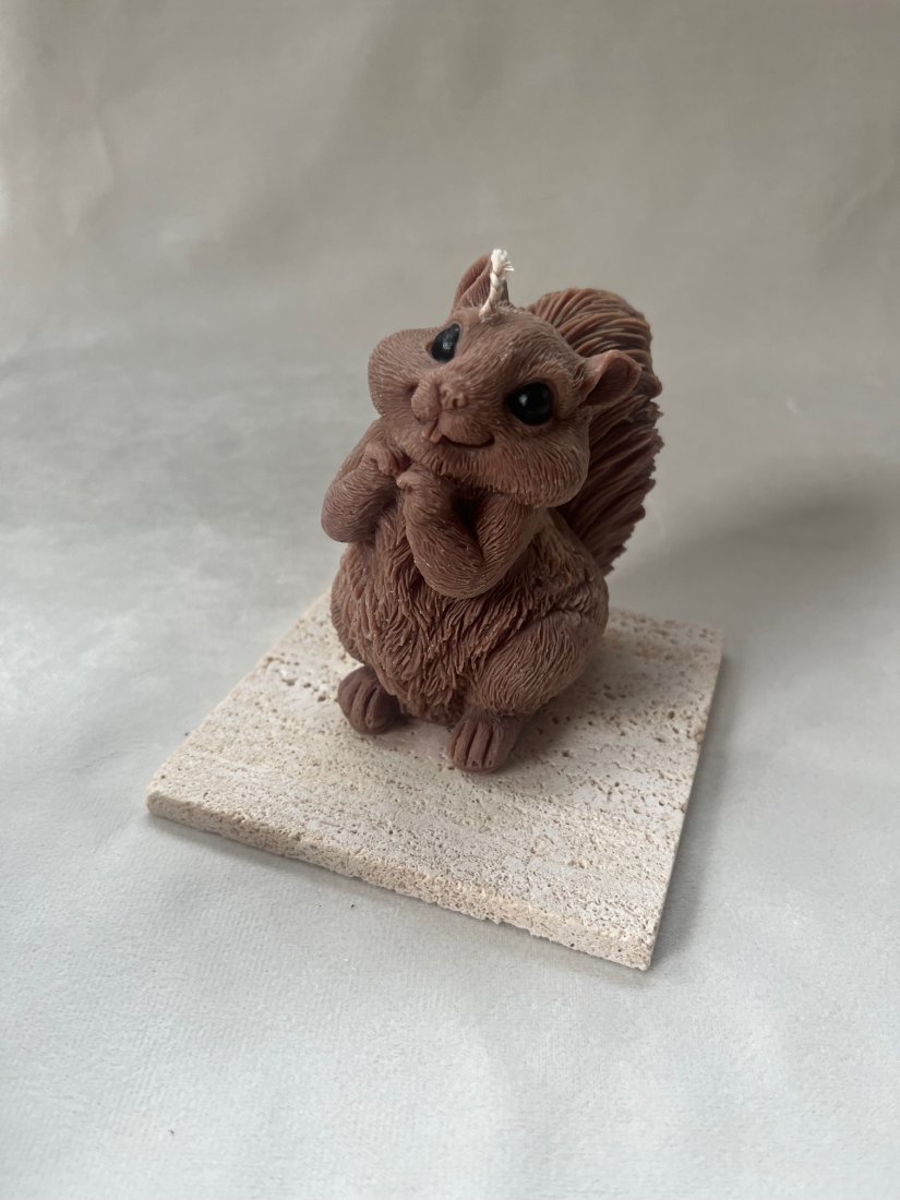 Poznaj uroczą świecę "Wiewiórka", która wniesie do Twojego wnętrza odrobinę natury i ciepła. Wykonana ręcznie z wosku sojowego połączonego z woskiem pszczelim, zachwyca nie tylko kształtem, ale też delikatnym, naturalnym zapachem wosku.
