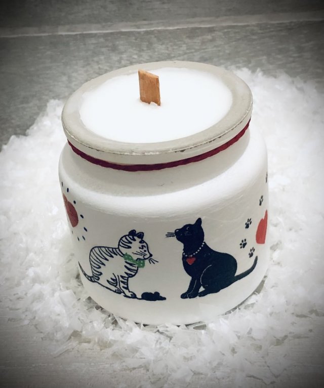 Świeczka sojowa Handmade.słoiczki z tzw. odzysku- zero waste. Ręcznie zdobione metodą decoupage. Po wypaleniu świeczki słoiczek możesz ponownie wykorzystać jako lampion. Naturalne - wykonane ze 100% wosku sojowego, biodegradowalnego.Ekologiczny drewniany podwójny knot. Długo się palą i nie kopcą. Super pomysł na prezent.