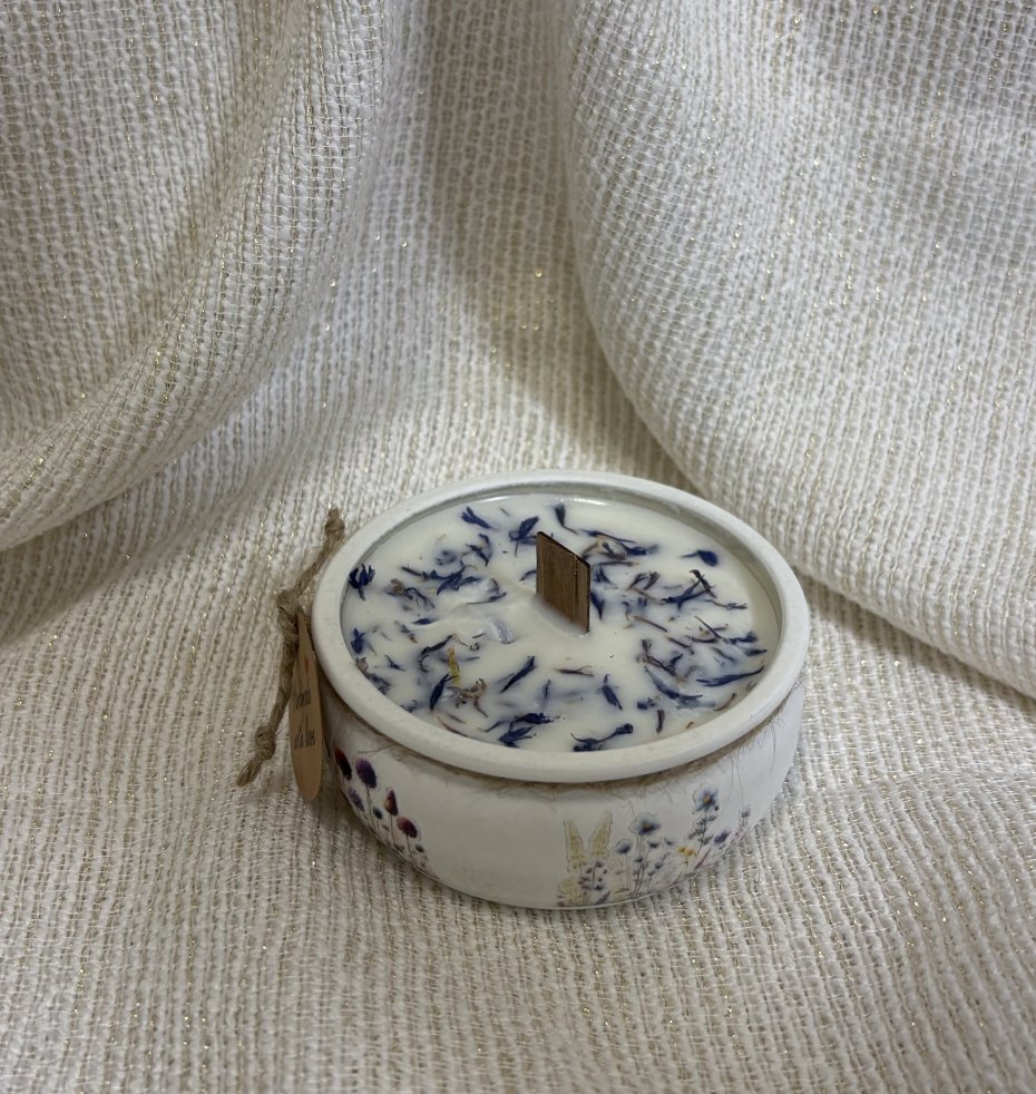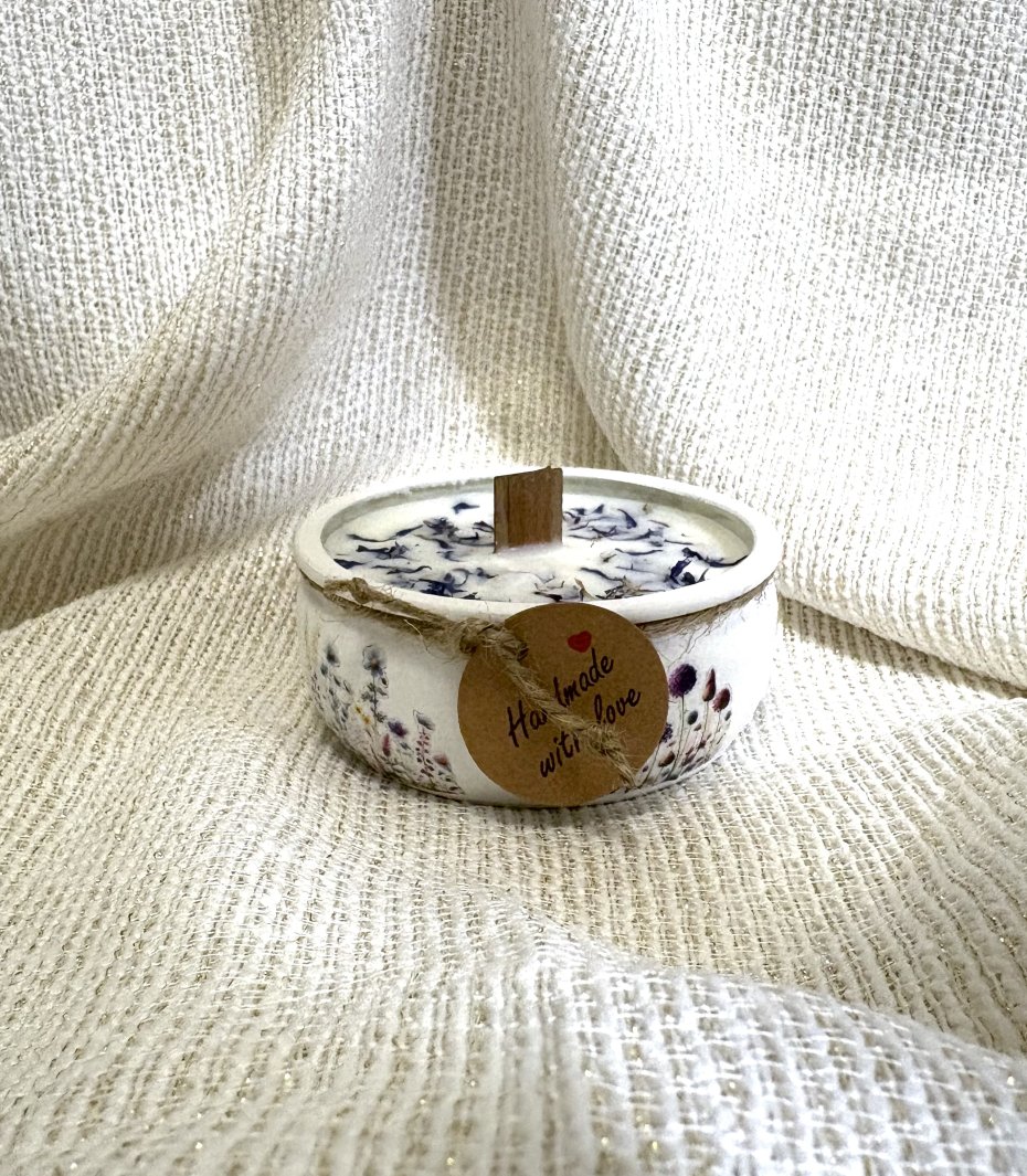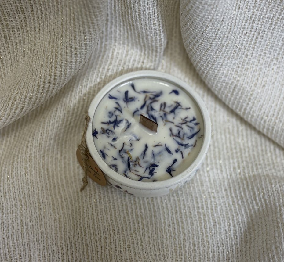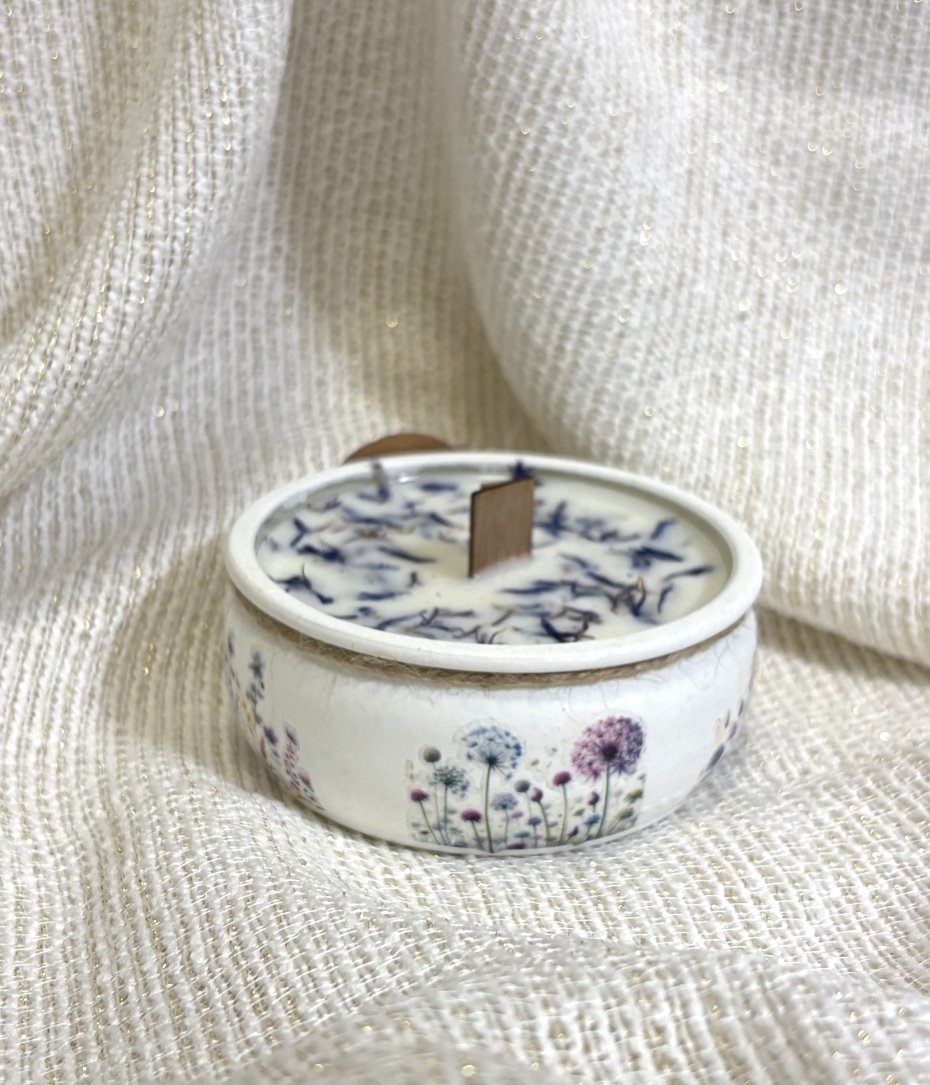 Świeczka sojowa, słoiczki z tzw. odzysku- zero waste. Po wypaleniu świeczki słoiczek możesz ponownie wykorzystać jako lampion. Naturalne - wykonane ze 100% wosku sojowego, biodegradowalnego.Długo się palą. Podwójny drewniany knot.Bez zapachu, suszone chabry. Super pomysł na prezent. Polecam :)