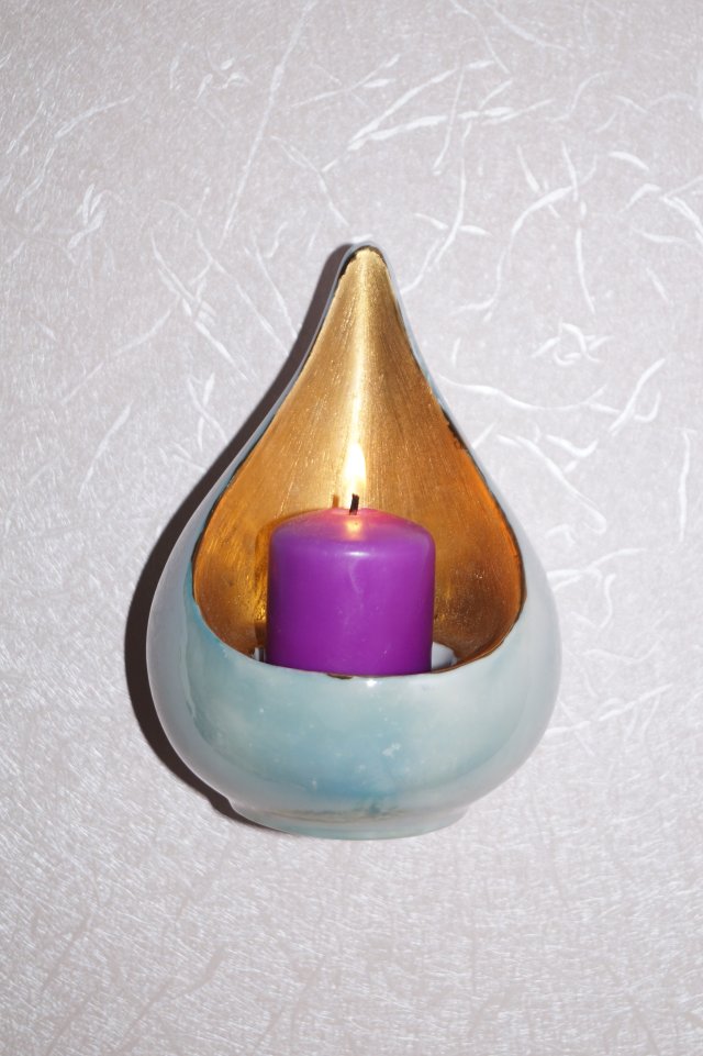 Klimatyczny porcelanowy świecznik, szkliwiony na błyszcząco, sygnowany numerycznie, ręcznie malowany, na świeczke lub tea-light, gotowy do powieszenia, ale można go też postawić, piękna ozdoba, która potrafi stworzyć romantyczny nastrój w pomieszczeniu