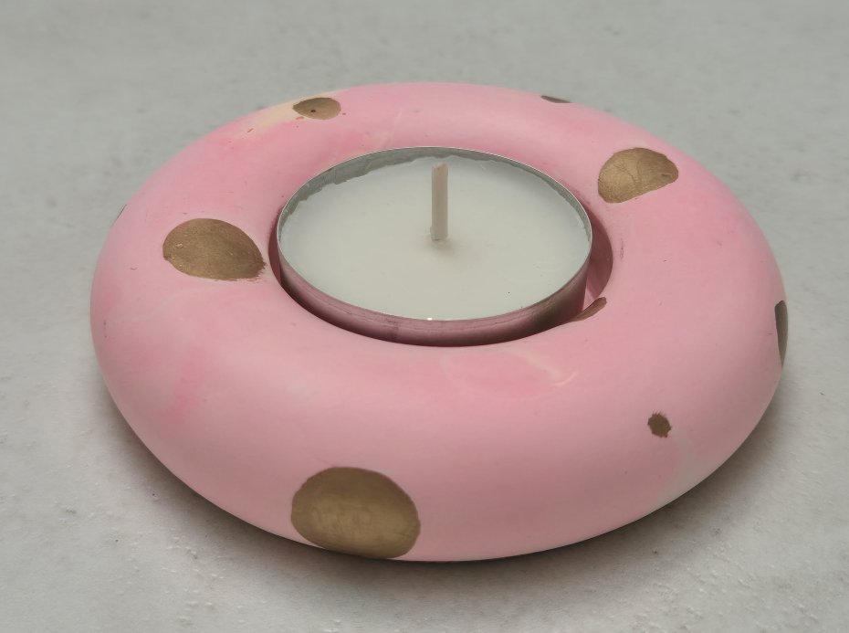 Dekoracyjna podstawa na klasyczną świeczkę typu tealight. Tworzona ręcznie z gipsu polimerowego, idealna jako nastrojowy dodatek do wieczornego relaksu, ozdoba stołu lub element aranżacji prezentowej. Subtelna forma i minimalistyczna estetyka pasują do każdego wnętrza.