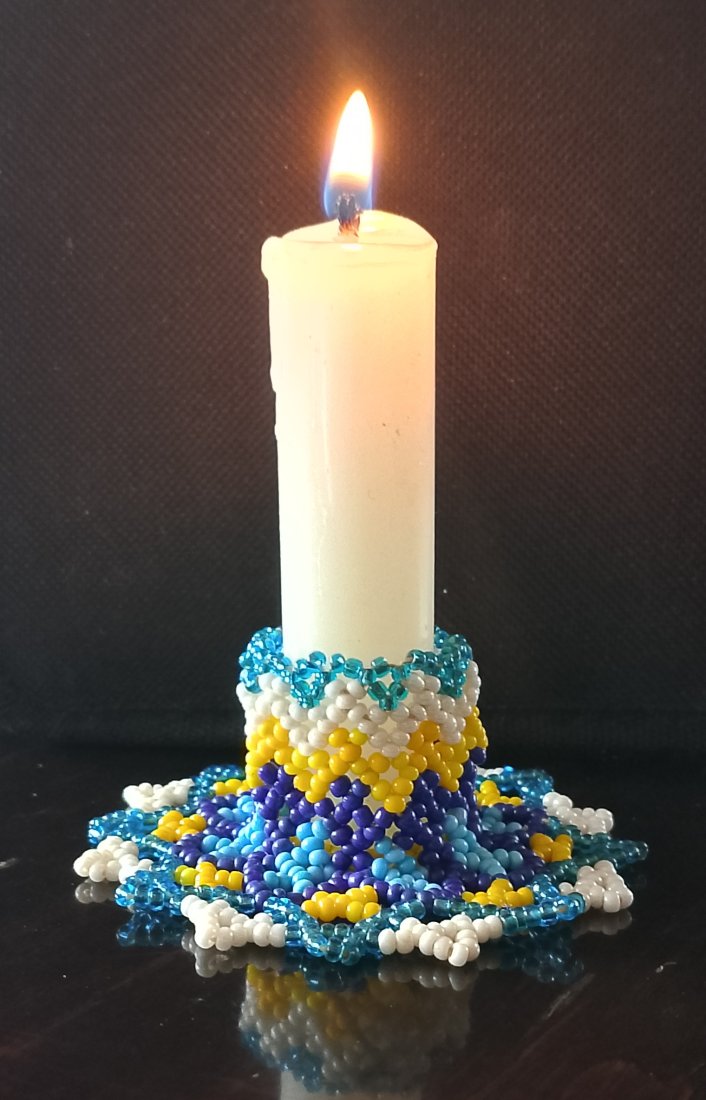 Wyjątkowy, przepiękny świecznik wykonany ręcznie z najwyższą precyzją z koralików TOHO.