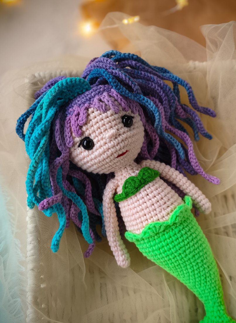 Szydełkowa laleczka syrenka będzie uroczym prezentem dla dziewczynek na wiele różnych okazji.