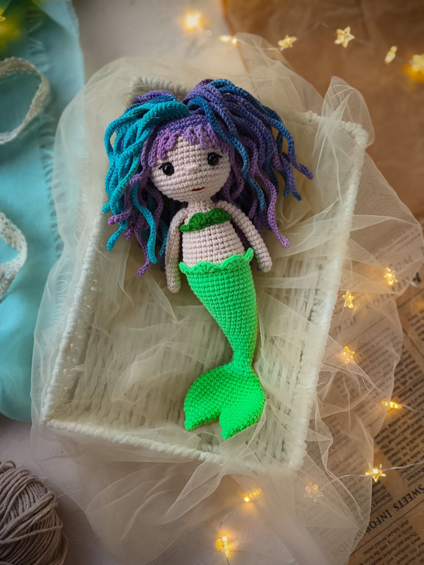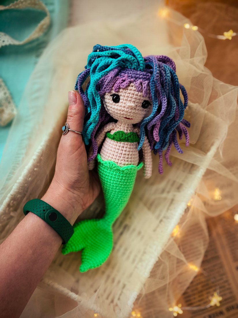 • Syrenka wykonana jest z hipoalergicznej włóczki półbawełnianej.
