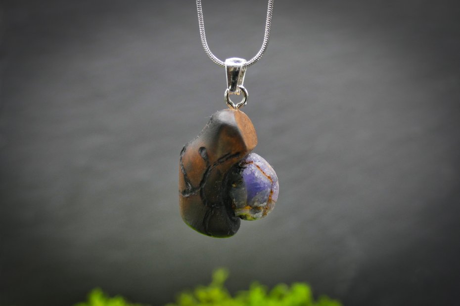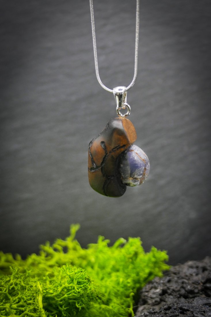 Naturalny wisiorek z orzecha w stylu organicznego minimalizmu.