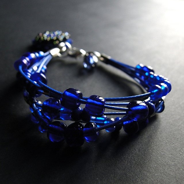 Urocza, delikatna, a zarazem niezwykle efektowna bransoletka wykonana ze sznurka woskowanego i szklanych koralików, przywieszka z filcu haftowana koralikami. Bransoletka pięknie połyskuje w słońcu! Zapięcie metalowe w kolorze srebra. Obwód ok. 18 cm. Polecam serdecznie.