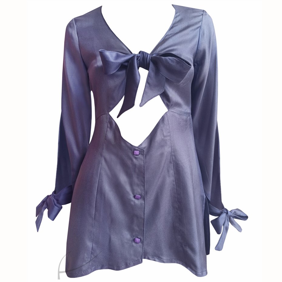 Szafirowa, zapinana tunika jedwabna z wiązanymi rękawami.