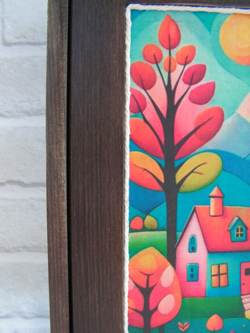Grafika na papierze ryżowym o gramaturze 30g/m2 z wesołym motywem kolorowych domów.