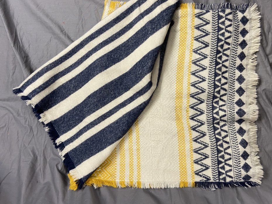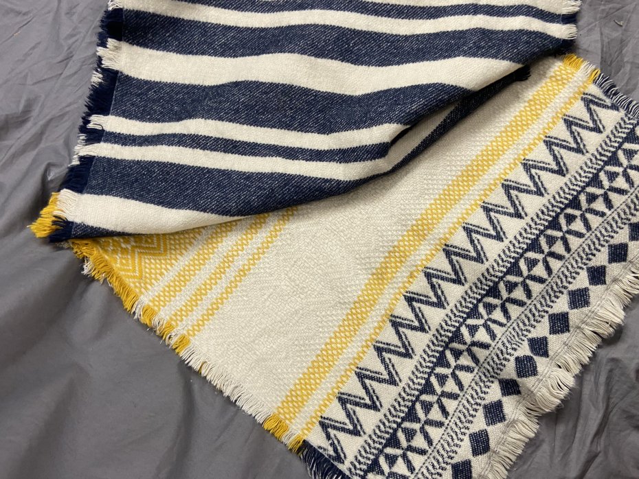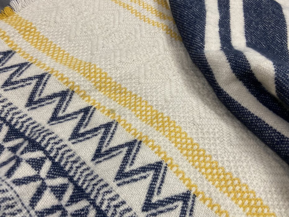 Przemięciutki, tkany szal. Jest to mieszanka akryl + wełna (próba ognia pokazuje, że nie jest to sama wełenka, ale jest w składzie..)