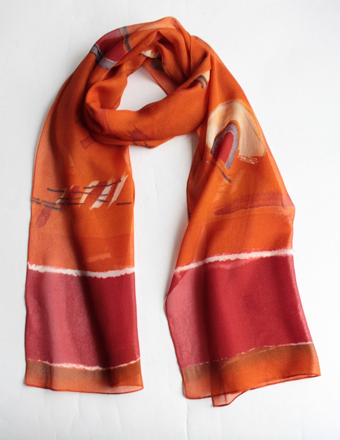 Zwiewny damski szal vintage w abstrakcyjne wzory.
