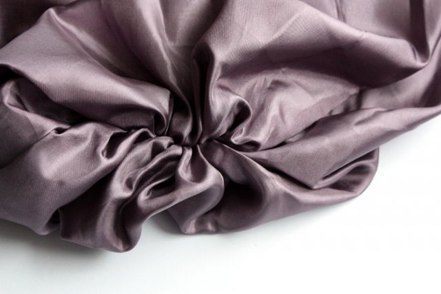 Elegancki, duży, podwójnie zszywany szal w odcieniu stonowanego, ciemnego fioletu. Uwagę zwraca nietypowe wykończenie brzegów, które zostały ciekawie udrapowane i zszyte.