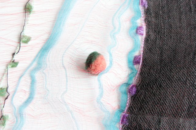 Przepiękny szal o niezwykłych detalach, różnych fakturach, przykuwający uwagę. Wykonany z unikalnego indyjskiego jedwabiu typu khadi.