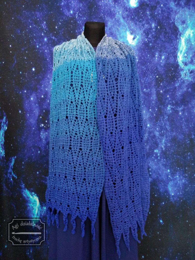 Szal powstał na podstawie wzoru "Neptun" autorstwa Agnieszki Markowskiej-Jędra