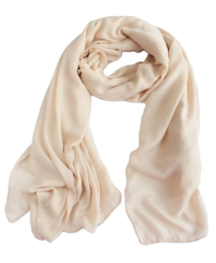 Miękki szal vintage w odcieniu beżu urozmaiconego delikatnymi motywem w kratę.