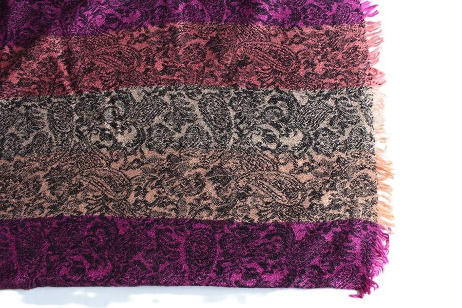 Szal vintage w pasy i misterne wzory. Brak metki ze składem - materiał oceniam na wiskozę z bawełną.