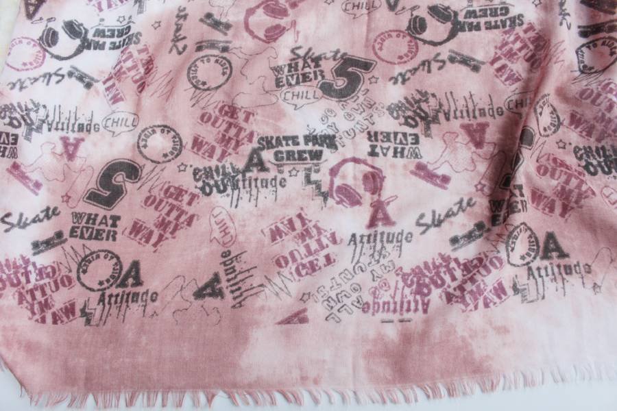 Duży, miękki szal z naturalnych włókien - bawełny i wiskozy - w różnorodne wzory.