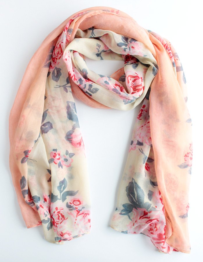Duży, miękki szal vintage w pełne uroku kwiatowe wzory. Wykonany z przyjemnej w dotyku tkaniny.