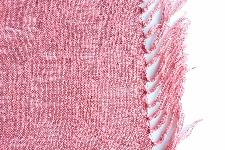 Szal vintage o ciekawej strukturze, wykonany z miękkiego materiału w pudrowym odcieniu. Materiał typu wiskoza (brak metki).